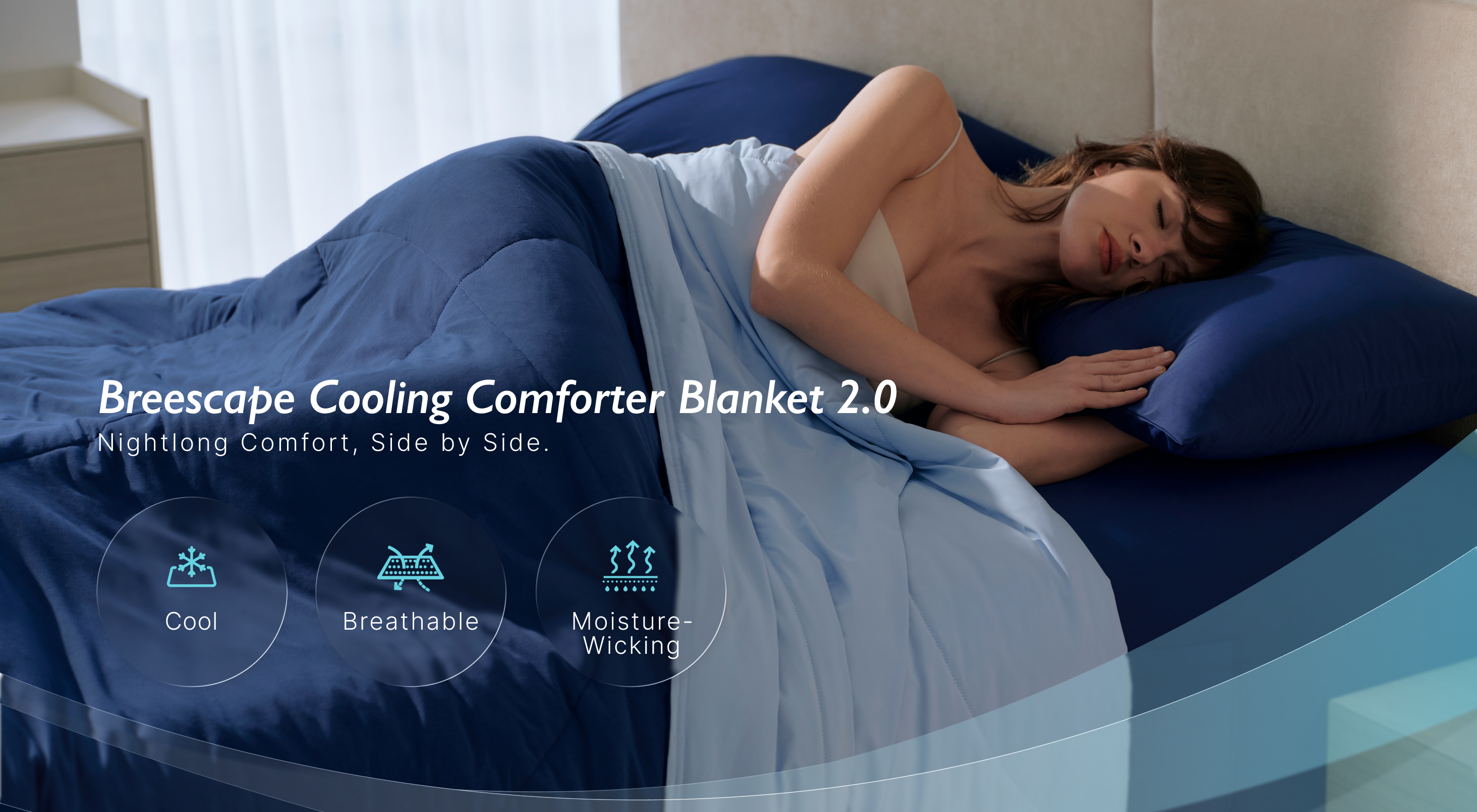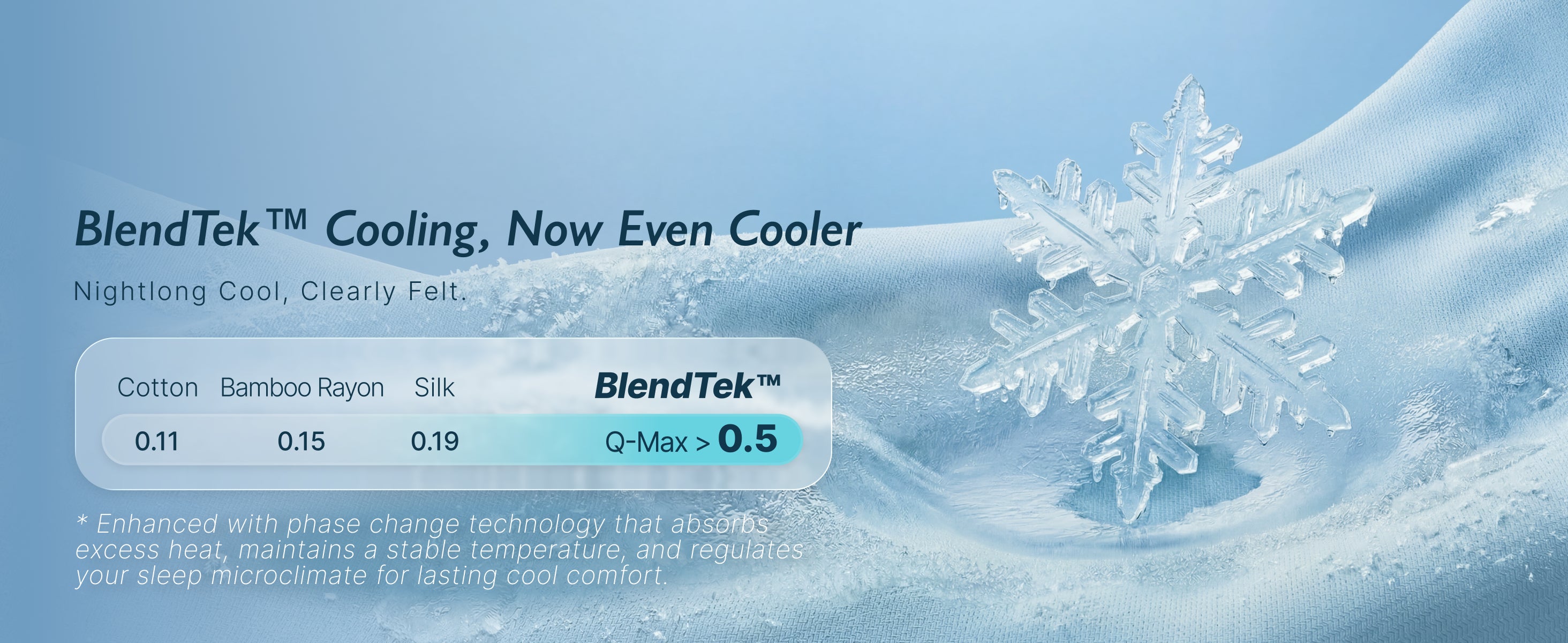 Our upgraded cooling comforter combines BlendTek™ technology with cooling fibers for dynamic temperature regulation, keeping you comfortably cool as your body temperature shifts. The Silk & Down-Like filling ensures lightweight, breathable loft, delivering soft, airy comfort and all-night airflow.