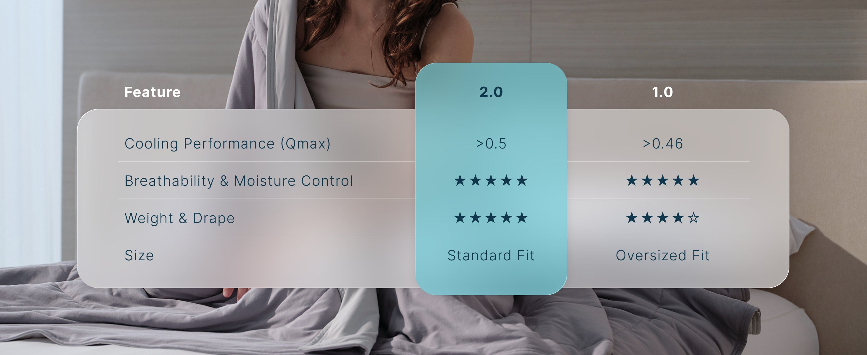 Qmax measures how cool a fabric feels instantly when it touches your skin. The higher the score, the cooler the fabric feels.